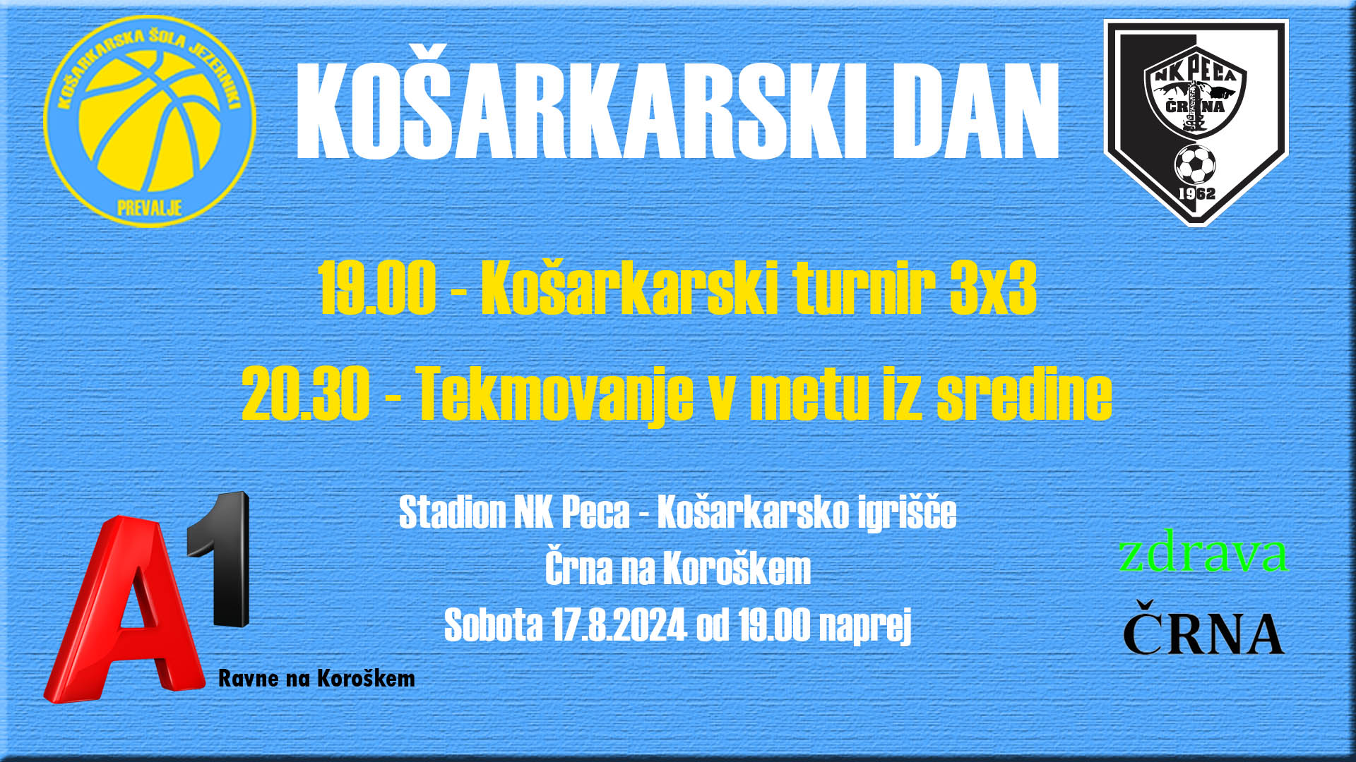 Sobota, 17.8.2024 od 19.00 naprej, zbor udeležencev 18.30, košarkarsko igrišče na stadionu NK Peca – Črna na Koroškem