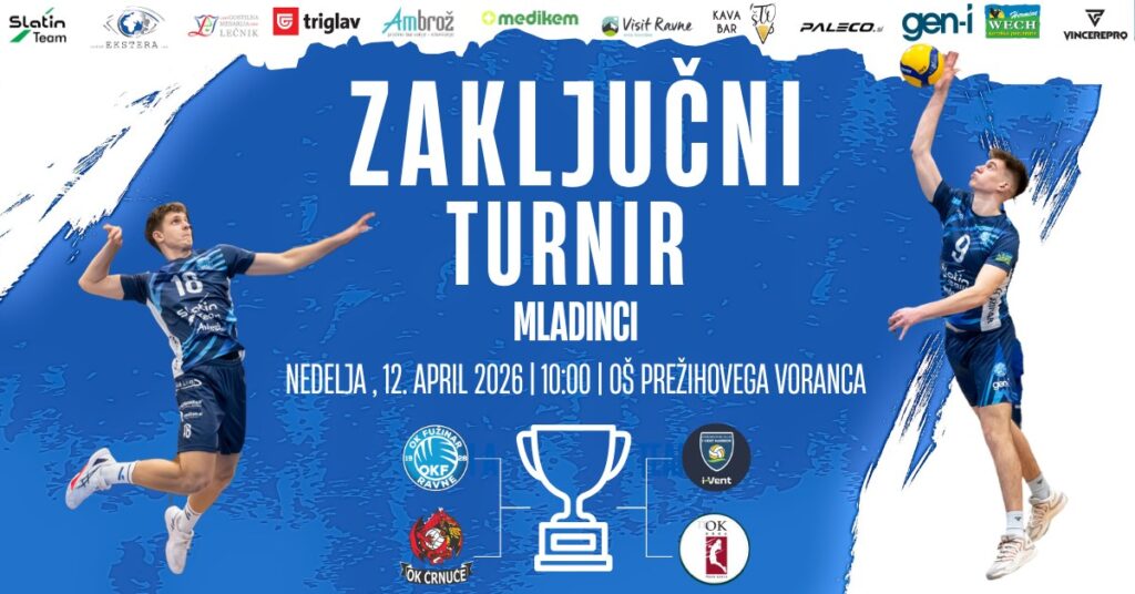 Zaključni turnir državnega prvenstva – mladinci (sezona 2025/26) Ravne na Koroškem bodo gostile najboljše mladinske ekipe letošnje sezone. Odbojkarji OK Fužinar Ravne se bodo v družbi OK i-Vent Maribor, OK Krka in OK Črnuče borili za naslov državnega prvaka v kategoriji mladincev. Spored zaključnega turnirja Nedelja, 12. april ob 10:00 1. polfinale:OK Fužinar Ravne – […]